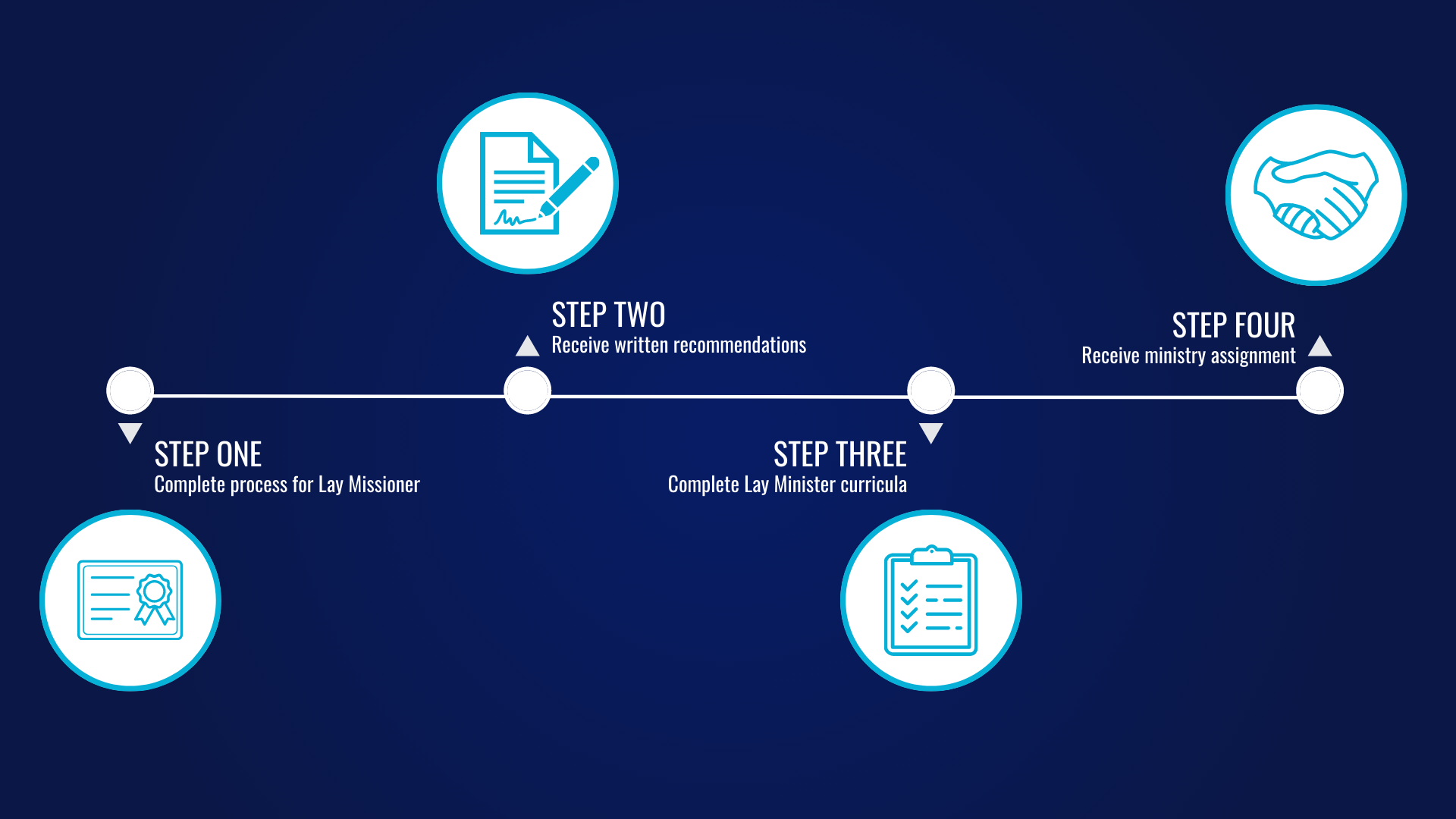 Then you will then need to complete the Lay Minister curricula. This is composed of Modulo Uno: Call and Covenant for Ministry and Modulo Dos: Practice of Ministry. Like the Lay Missioner process, these modules are available in digital, hybrid and in-person settings. Each module’s duration depends on the chosen setting.
