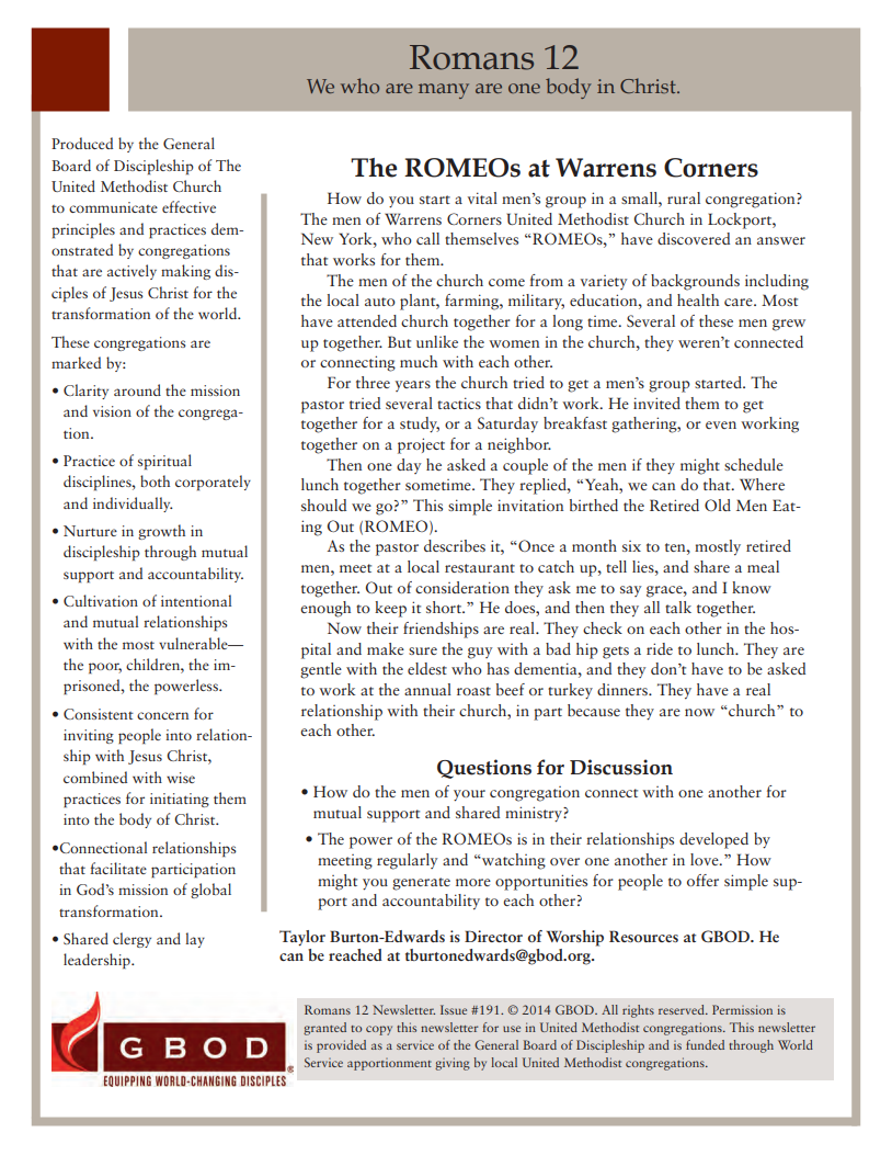Ministry for, by and with men take many forms – spiritual growth programs, scouting and other ministry with youth, mission and service projects of many kinds. United Methodist Men encourages its units and members to have a special emphasis on reducing and eliminating domestic violence.