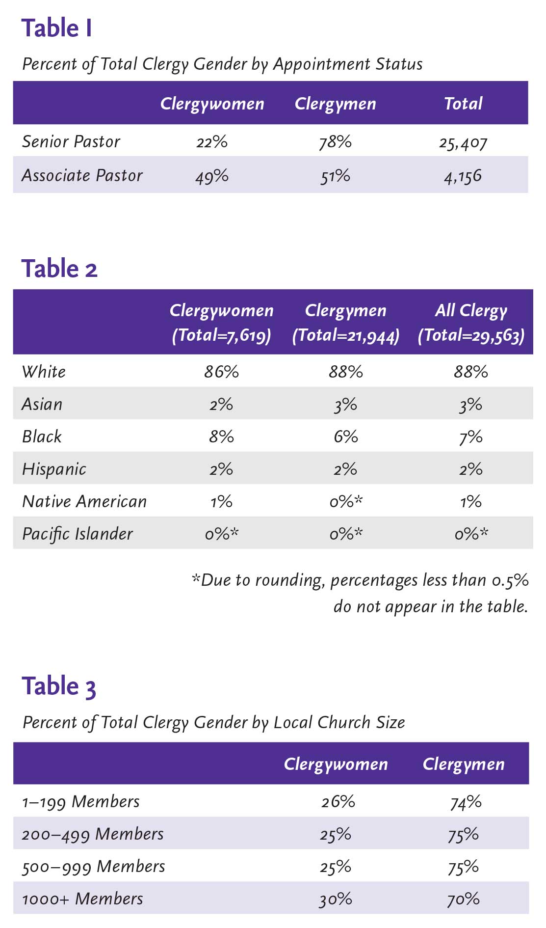 Of those clergypersons serving local churches in the United States, 26% are clergywomen and 74% are clergymen (see Table 1).