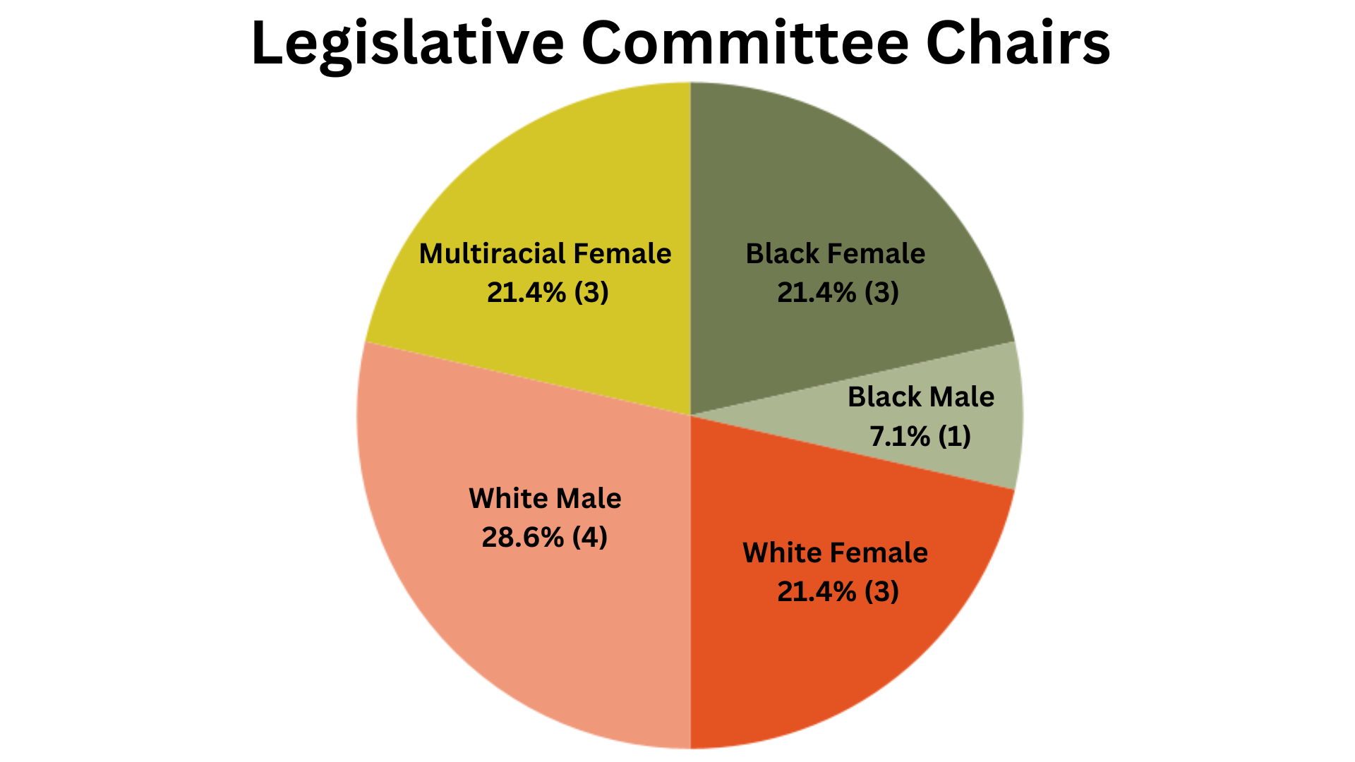 Chairpersons: 3 Black Females, 1 Black Male, 1 White Female, 3 Multiracial Females, 4 White Males.