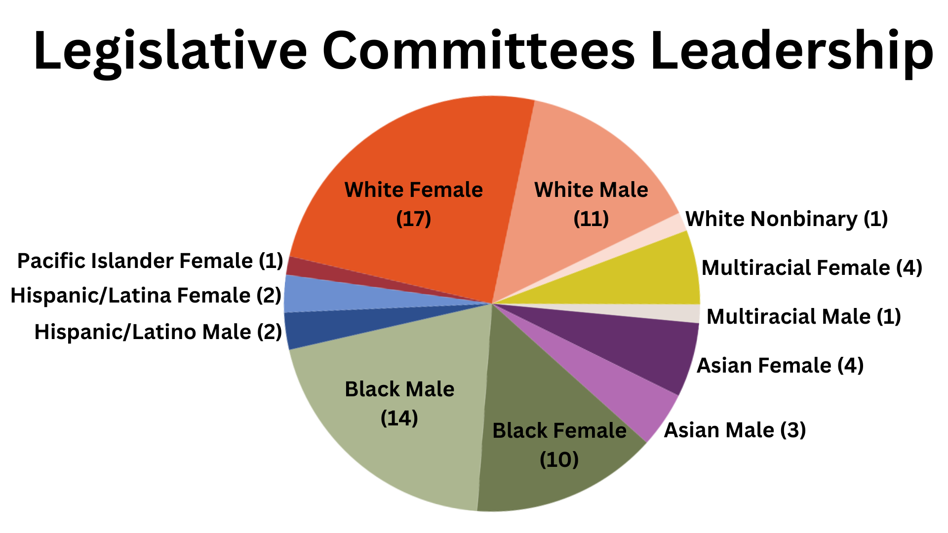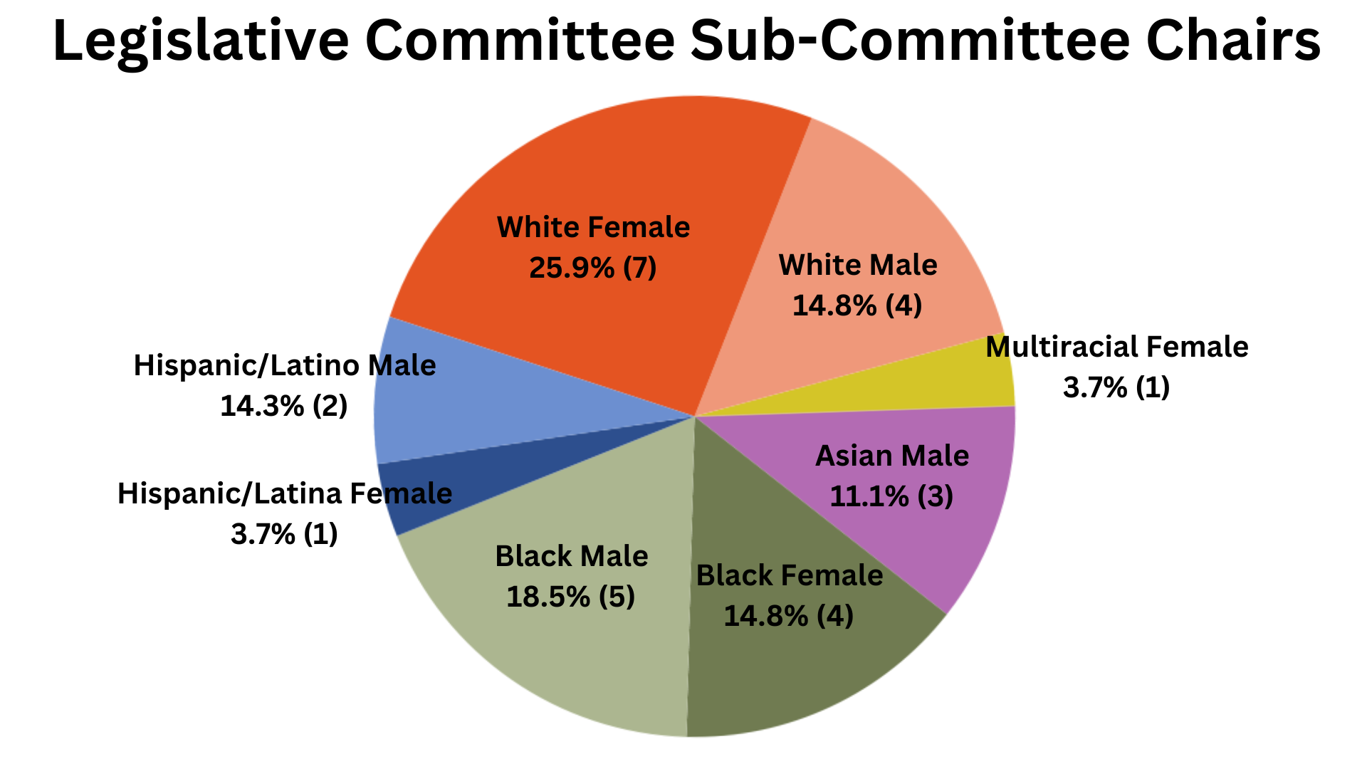Sub-committee chairs: 3 Asian Males, 4 Black Females, 5 Black Males, 1 Hispanic/Latina Female, 2 Hispanic/Latino Males, 7 White Females, 4 White Males.