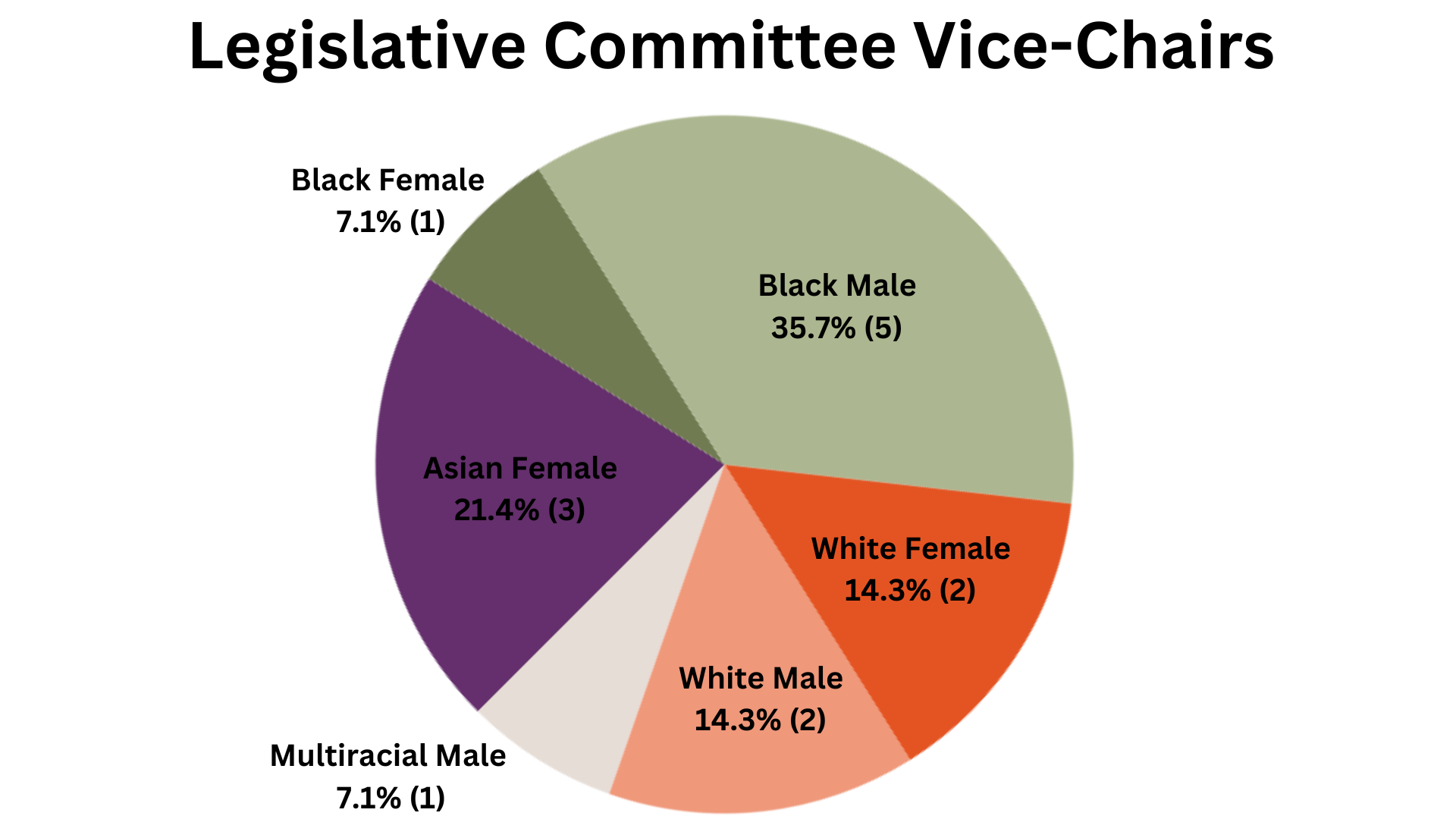 Vice-chairs: 3 Asian Females, 1 Black Female, 5 Black Males, 2 White Females, 2 White Men, 1 Multiracial Man.