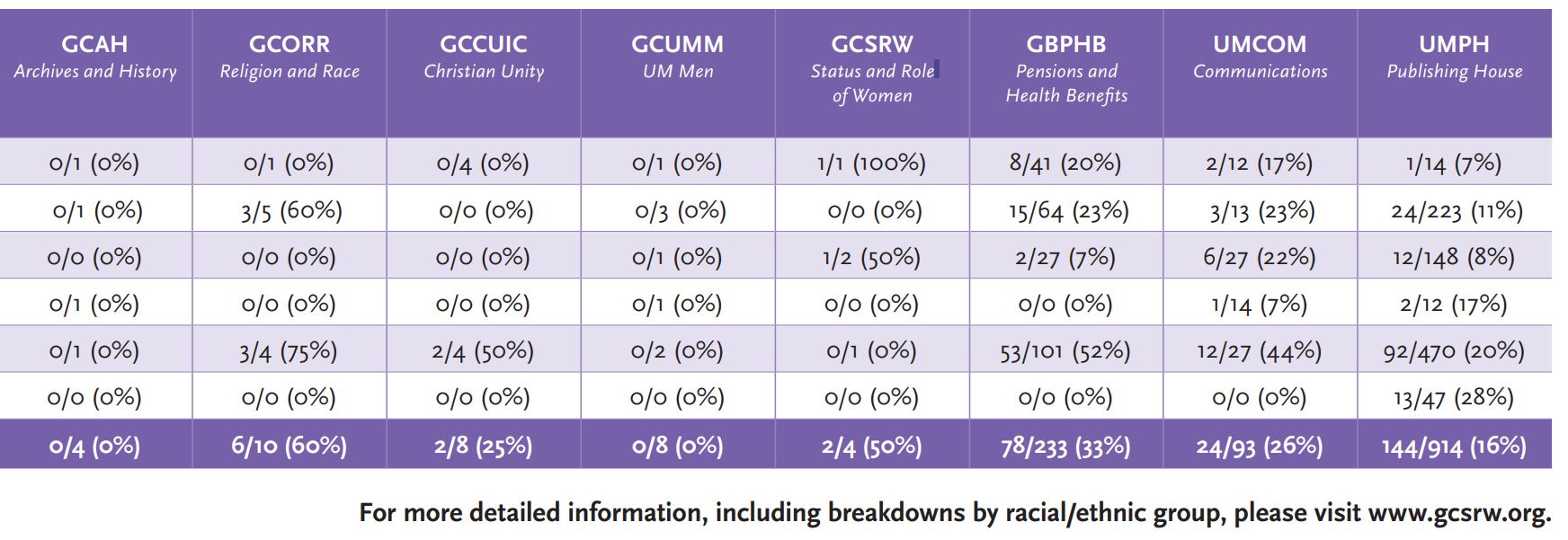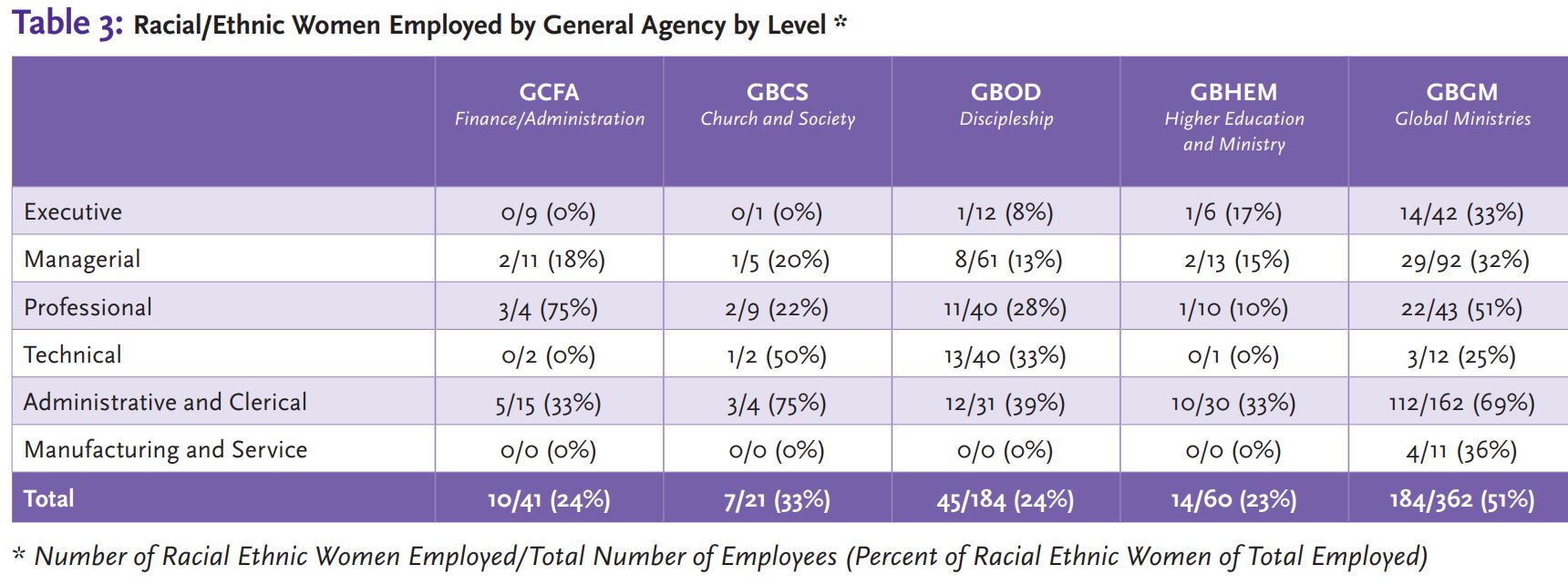 Twenty-seven percent (or 516 of the 1,942) of individuals employed by the general agencies of The United Methodist Church are racial/ethnic women (see Table 1).