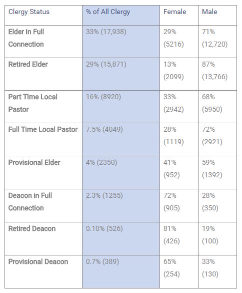 With 23.5% of clergy either full or part time local pastors, and provisional elders and deacons at 5%, it seems that the UMC is not replacing elders and deacons at the same pace that they are retiring.