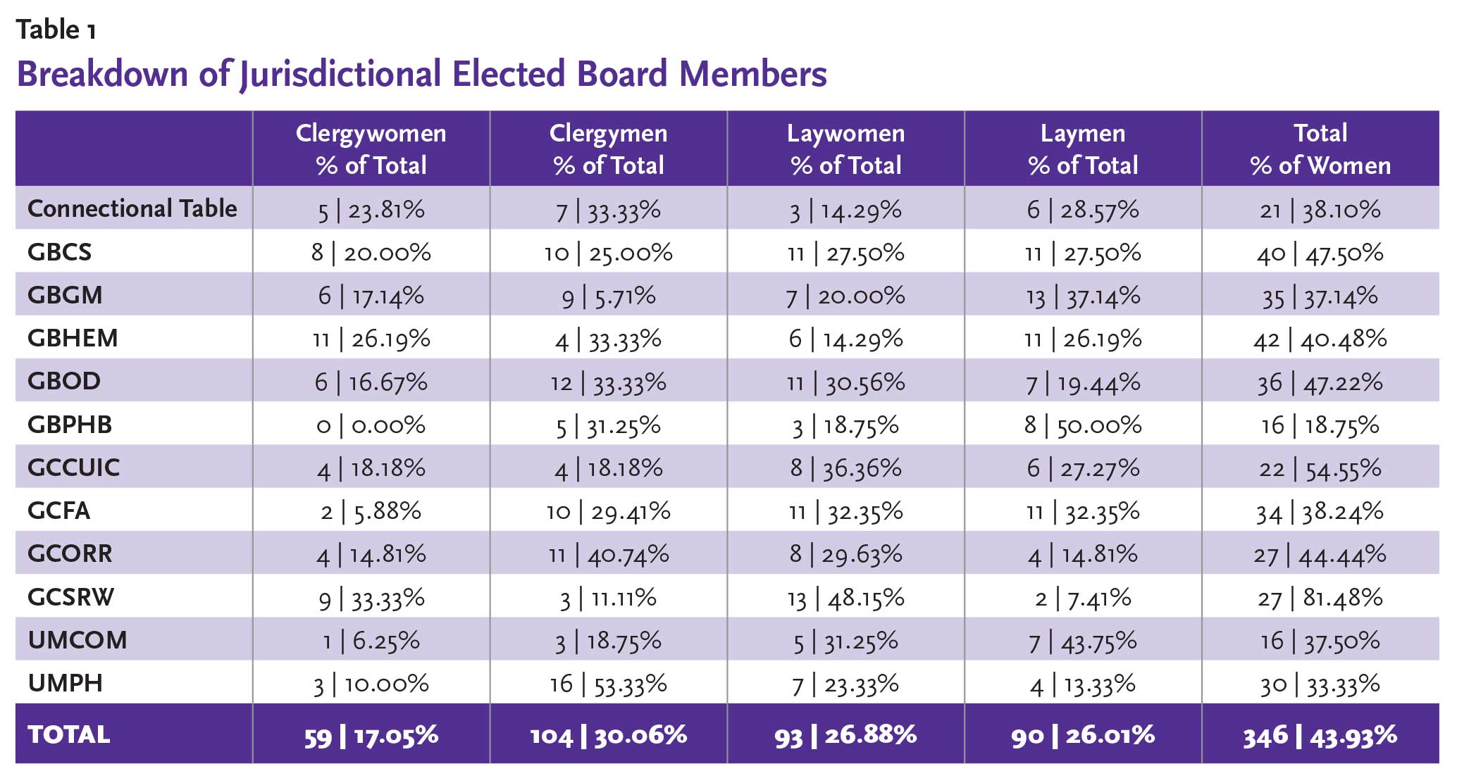 Laywomen make up 28% of the total membership of the general agencies and, as such, tend to have better representation than laymen in most jurisdictions. Except for the South Central Jurisdiction, laywomen outnumber laymen. However, the laywomen’s numerical advantage is nothing like that of the clergymen’s numerical advantage of clergywomen. Laywomen outnumber laymen in most jurisdictions by a total of two persons and not two times as many.