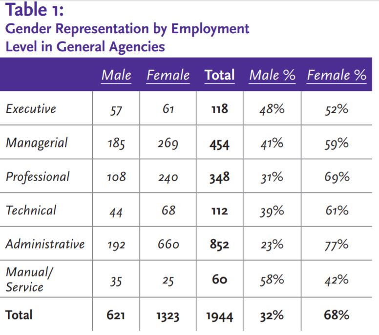 Table 2 : Gender Representation by General Agency