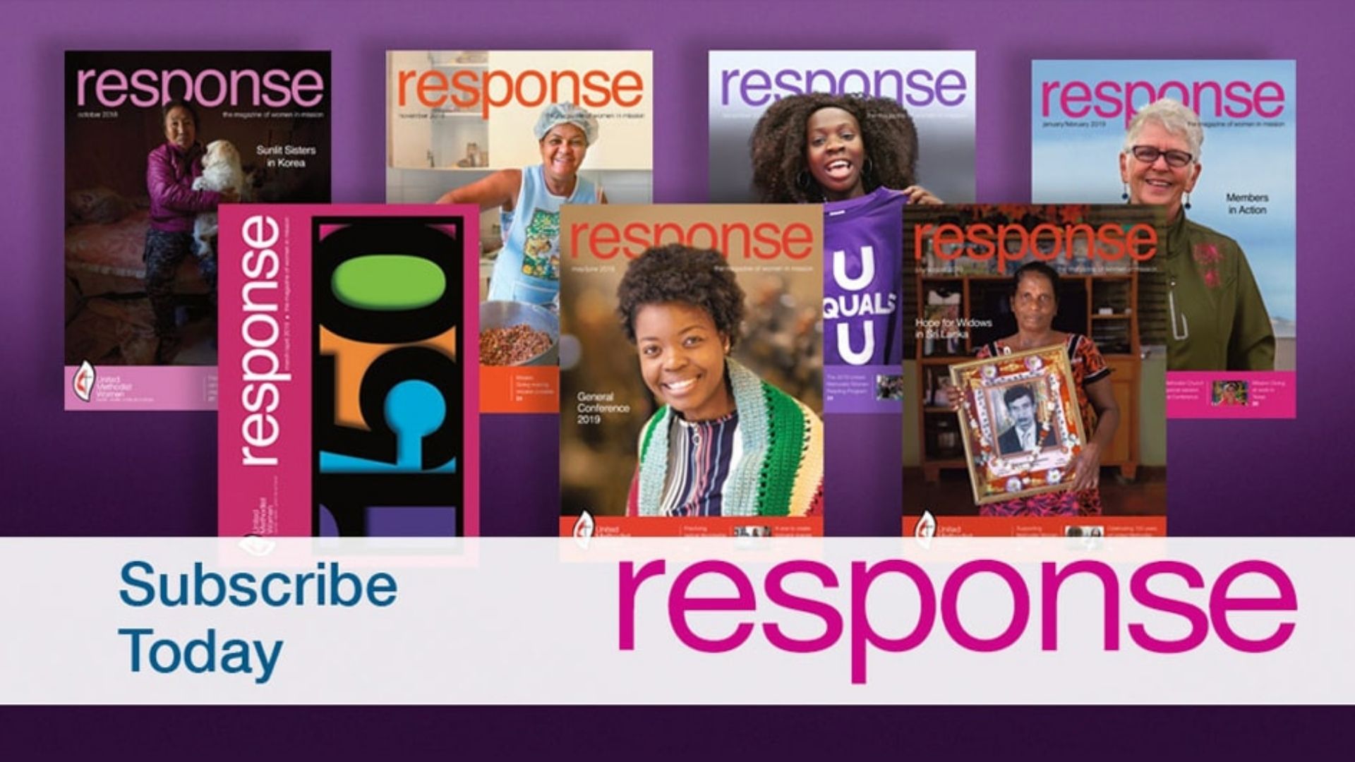 response, una publicación reconocida, es la revista oficial de Mujeres Metodistas Unidas y es publicada por la oficina nacional. Cada edición tocará tu corazón, sacudirá tu alma y desafiará tu mente. Los temas y las ediciones cubren el crecimiento espiritual, la extensión de la misión y los informes sobre nuestro trabajo local, nacional e internacional. response incluye: Estudios bíblicos, Oportunidades para el crecimiento y desarrollo espiritual, Sugerencias de programas, Artículos sobre personas y proyectos apoyados por su Donación para Misiones y más.