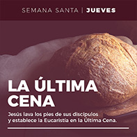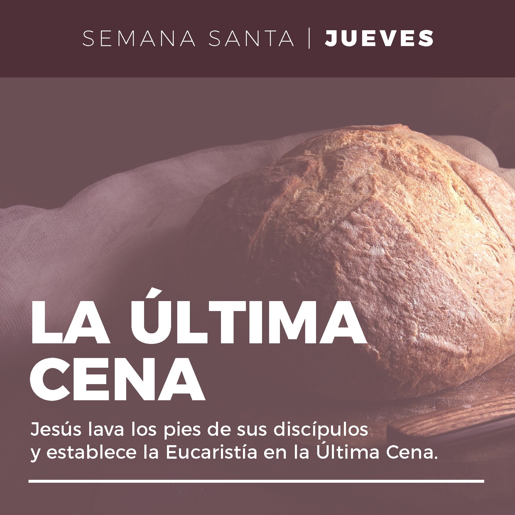 Se sugiere que publique las siguientes imagenes cada dia de la Semana Santa en sus redes sociales y como una "Story". Puede compartir un enlace a una breve reflexión suya o blog de su página web sobre el acontecimiento mencionado en la imagen.