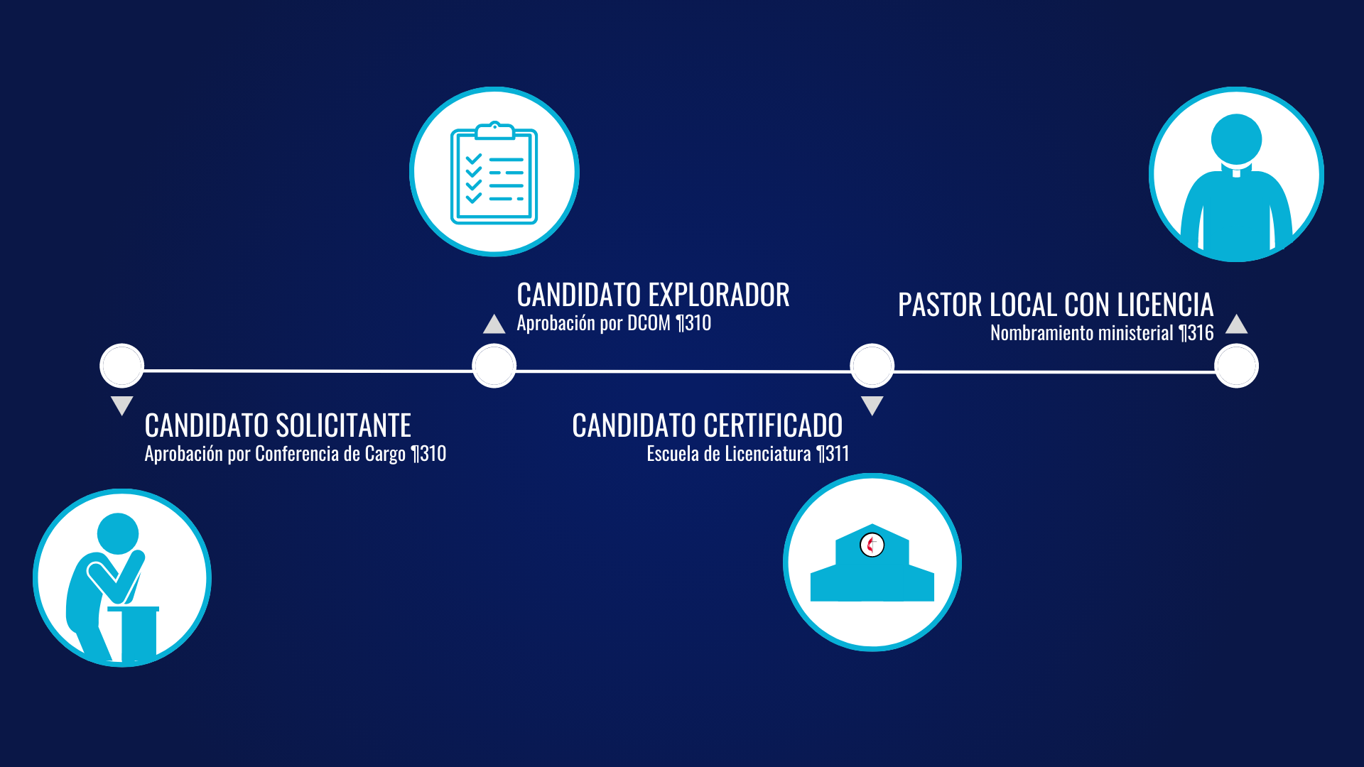 Los pasos descritos en este video son las normas básicas establecidas por la Junta General de Educación Superior y Ministerio que se encuentran en los párrafos 310 -316 del Libro de Disciplina de la Iglesia Metodista Unida. Sin embargo, cada conferencia anual tiene la autoridad de requerir pasos adicionales para contextualizar su preparación y formación. Así que consulte con su pastor o pastora, su superintendente de distrito o mentor para asegurarse de que está cumpliendo con los requisitos de su conferencia.