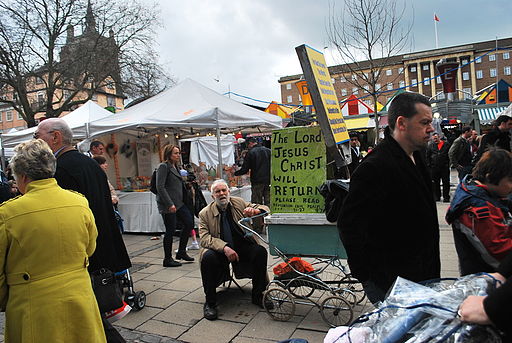 He usado la foto de arriba en artículos parecidos a este por varios años porque aún resuena con elocuencia. Mírelo de cerca. El escenario es el mercado. Nadie está prestando atención al cartel de este hombre excepto el fotógrafo. Todos los demás están caminando, como si el cartel no tuviera importancia. No les llama la atención. ¡Ellos están ahí para comprar! No están ahí para pensar ni en el fin de su propia vida ni en el fin de este mundo.