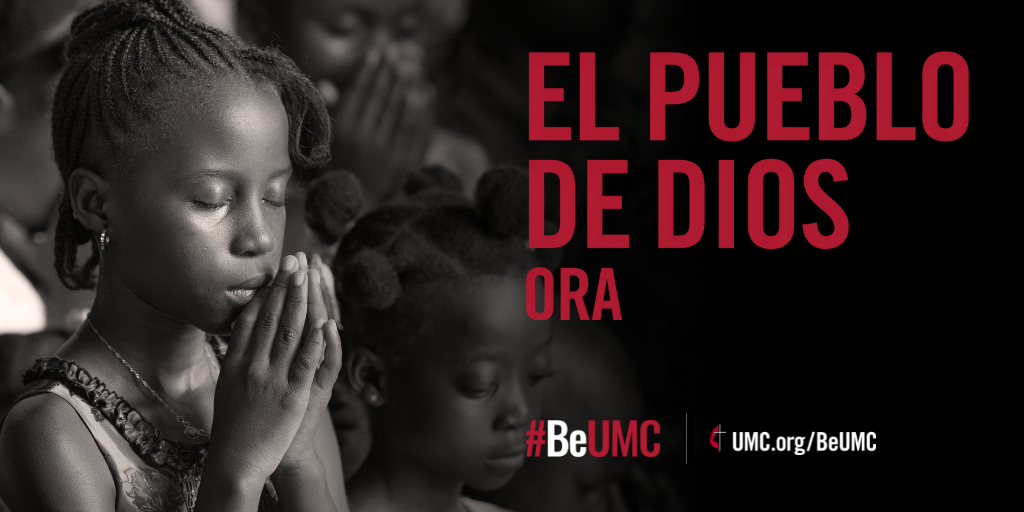 The #BeUMC campaign reminds us of who we are at our best. As people of God called The United Methodist Church, we’re faithful followers of Jesus seeking to make the world a better place. Praying (girl), social media graphic (Spanish).