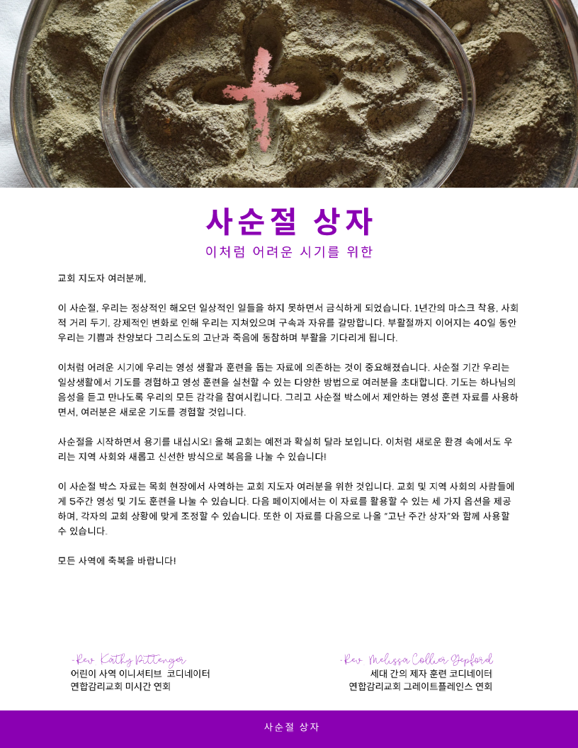 재의 수요일 자료를 포함한 사순절 상자 영문으로 읽기 (Read Lent in a Box with Ash Wednesday resource in English)
